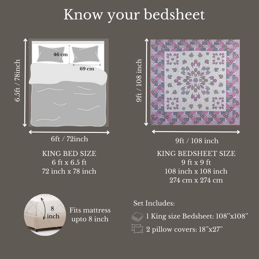 Jaipur Weaves Bedsheet King Size 100% Pure Cotton Bed Sheet With 2 Pillow Covers, Super Soft Cozy Bedsheets Set,108X108 Inches/ 9Ftx9Ft (Floral Lavender Rose, Super King), 144 TC