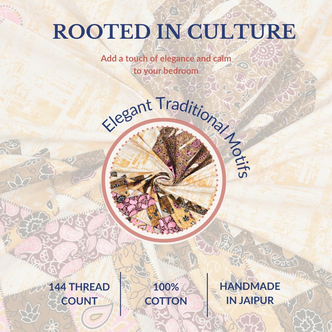 Jaipur Weaves Bedsheet King Size 100% Pure Cotton Bed Sheet with 2 Pillow Covers, 210 TC Premium Bedding Set, Super Soft Cozy (White Floral Blocks, King)