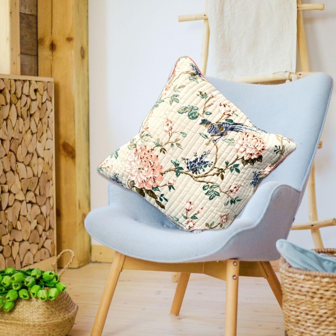 Jaipur Weaves Cushion Cover 16 Inch X 16 Inch – Set of 2, Pure Cotton,180 TC, Bird Themed, Decorative Soft Floral Cushions for Sofa/Bed/Chair, Gift for Home Decor (Garden Cream, 2)