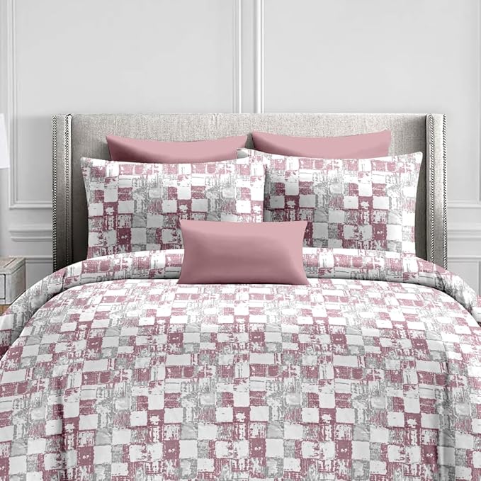 Jaipur Weaves 300 TC Cotton Bed Sheet for Double Bed with 2 Pillow Covers| Queen Size,90×100 Inches, Soft & Breathable | Premium Cotton Queen Size Bed Sheet | Ideal for Modern Bedrooms|Pink-Geometric