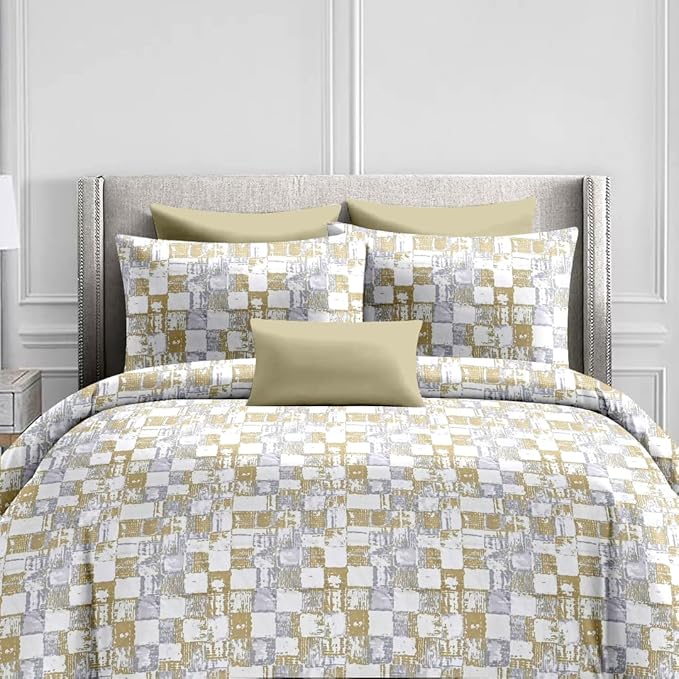 Jaipur Weaves 300 TC Cotton Bed Sheet for Double Bed with 2 Pillow Covers| Queen Size,90×100 Inches, Soft & Breathable| Premium Cotton Queen size Bed sheet | Ideal for Modern Bedrooms|Yellow Geometric